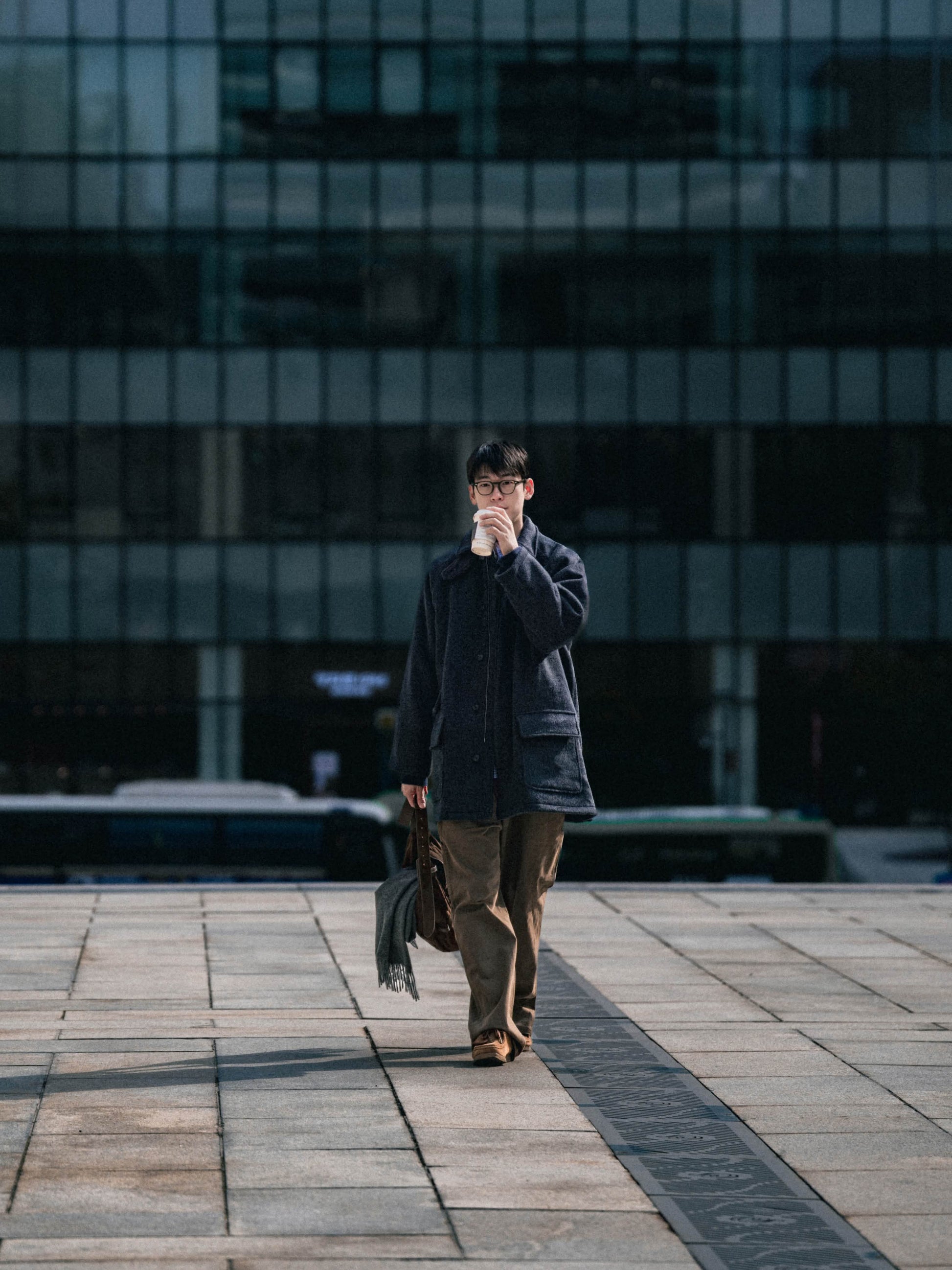 袖口、口袋翻蓋、領口添加了厚款同色系燈芯絨面料,在羊毛的溫暖中融入個性。稍微卷起袖口時露出的燈芯絨細節,以及將領口提升至頸部時展現的燈芯絨質感,增添了獨特的細節。