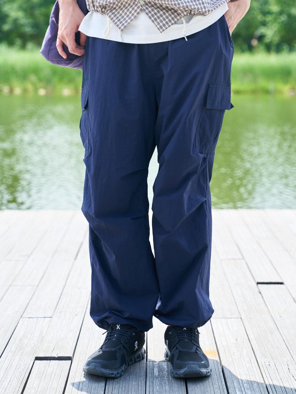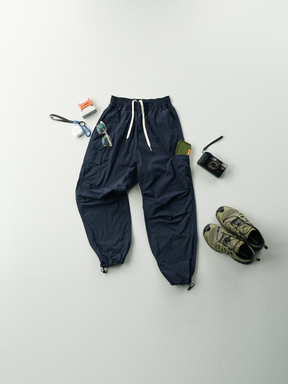 A daily item that creates various looks with one pair of pants. Made from lightweight nylon fabric with dimensional details and just the right volume for a comfortable yet polished appearance.