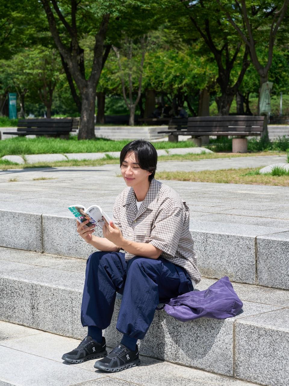 "Before work, stopping by the local bakery for a take-out coffee. A lightweight tee and these pants are all you need. Tighten the hems for a sleek look or loosen them for a more relaxed vibe.