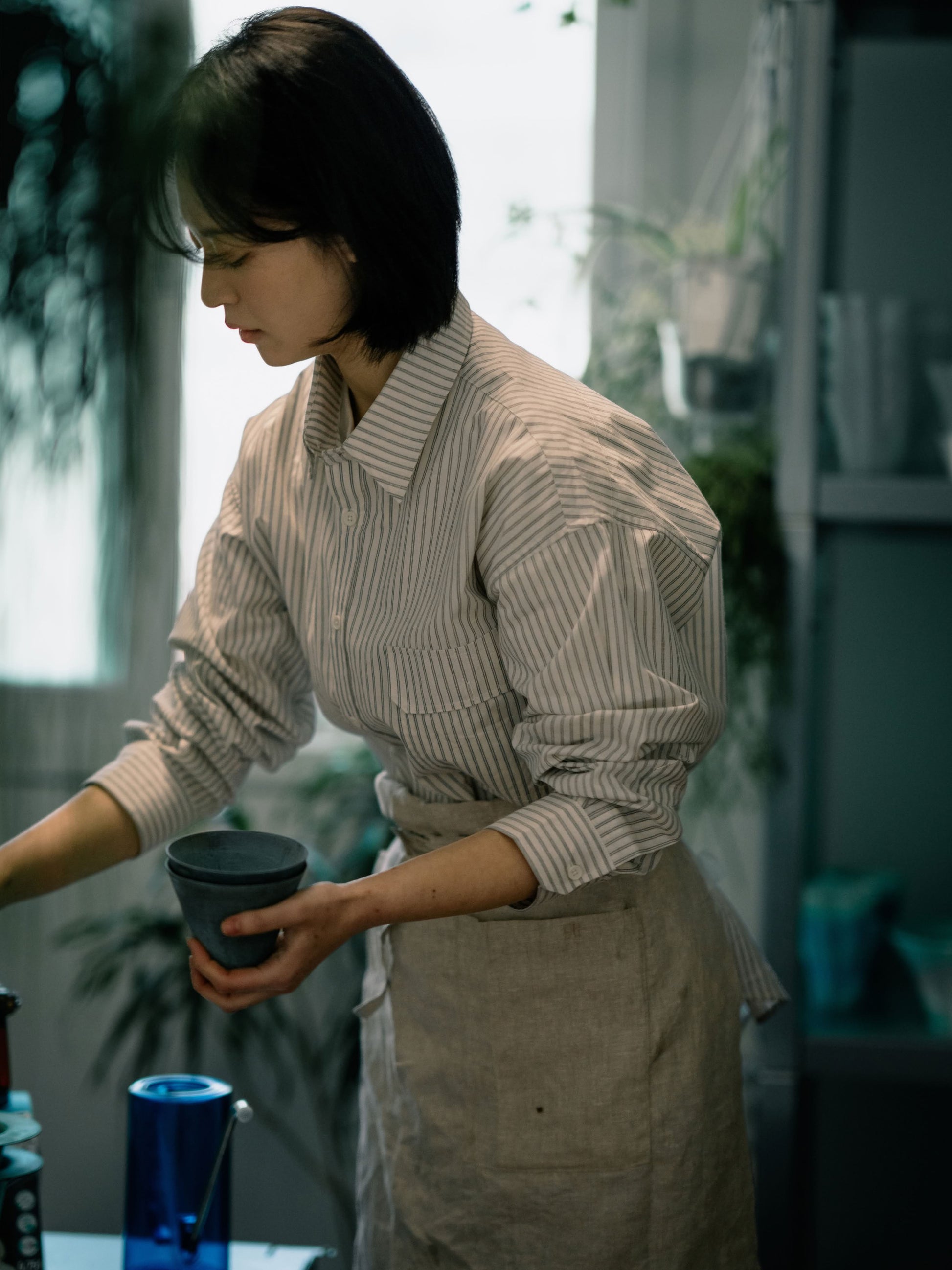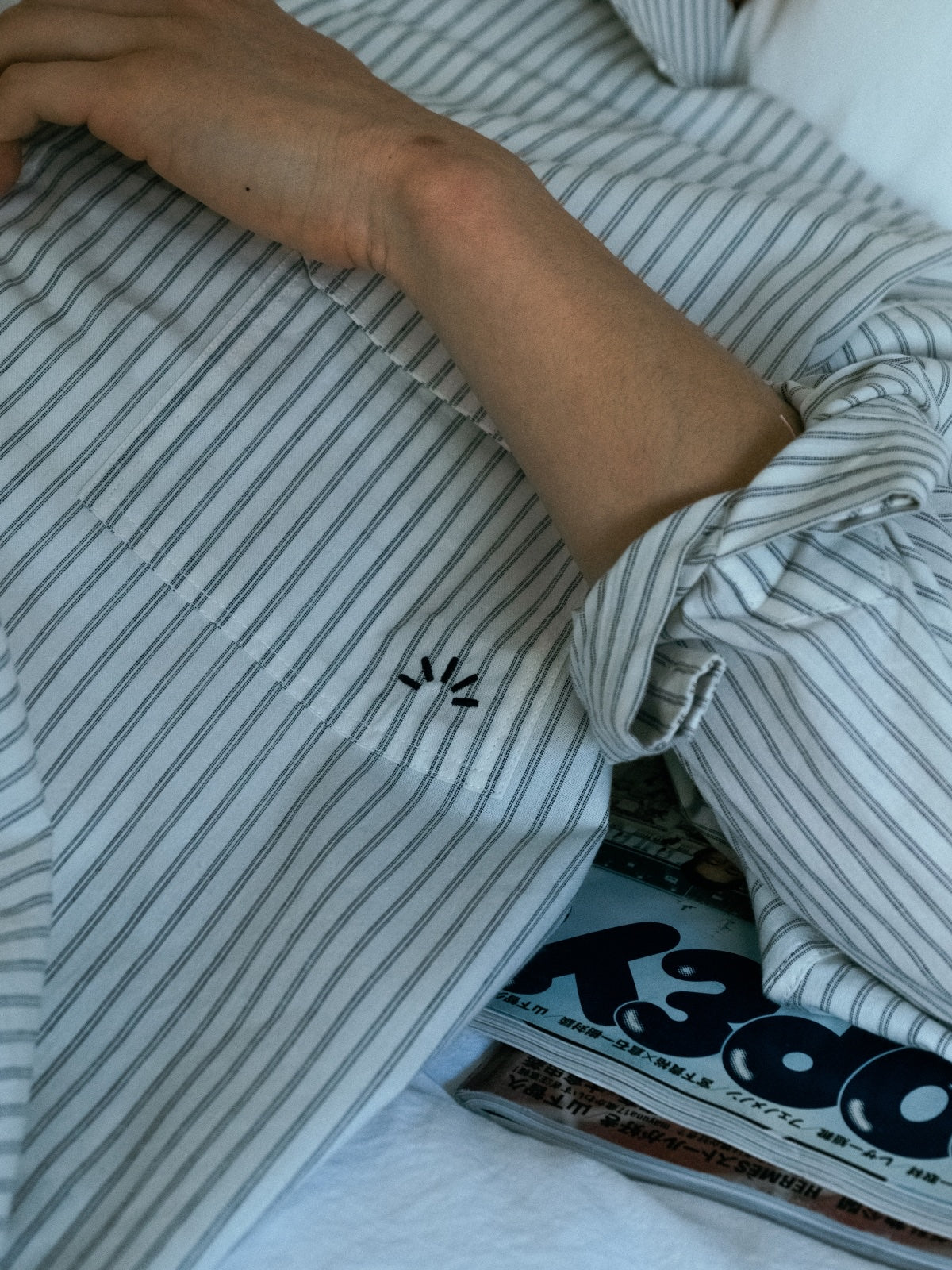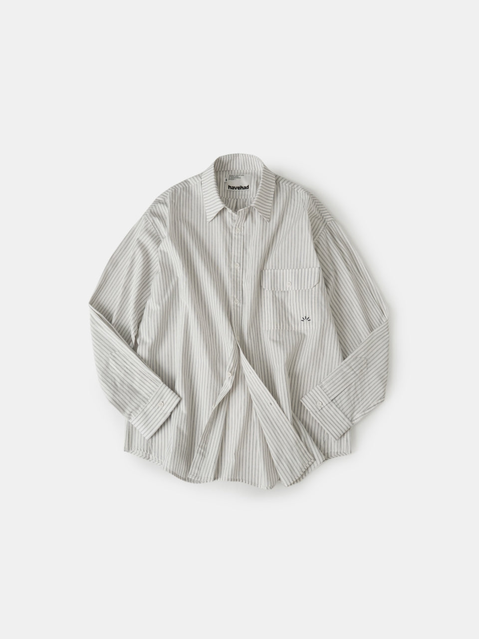採用帶有季節氛圍的色織條紋與寬鬆版型相互呼應。自然順肩線條搭配附翻蓋的胸前口袋,兼顧實用與造型亮點。選用40支高密度純棉布料並加以水洗處理,觸感柔軟且結實耐穿,洗後也不易變形,四季都好搭。細緻的雙道車縫與低調的 햇살 標誌刺繡,提升整體質感。