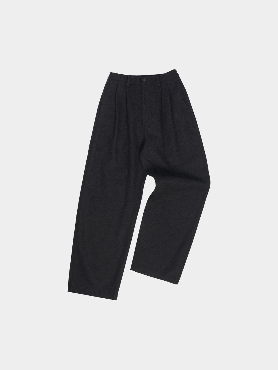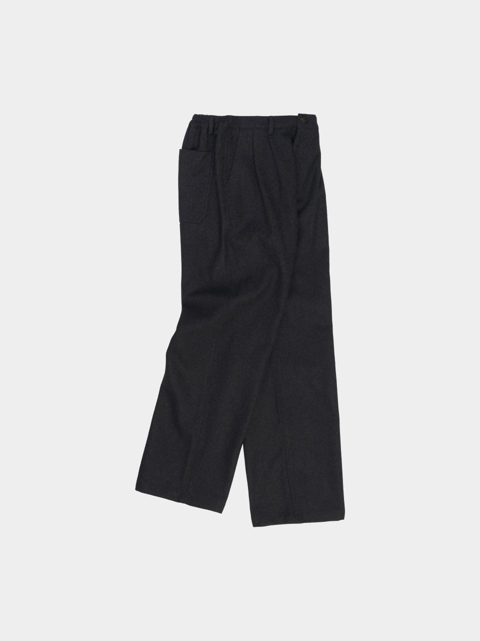 双褶设计带来宽松线条,腰部后半松紧带即便长时间穿着也能保持舒适。外观端正,穿着感则柔和。