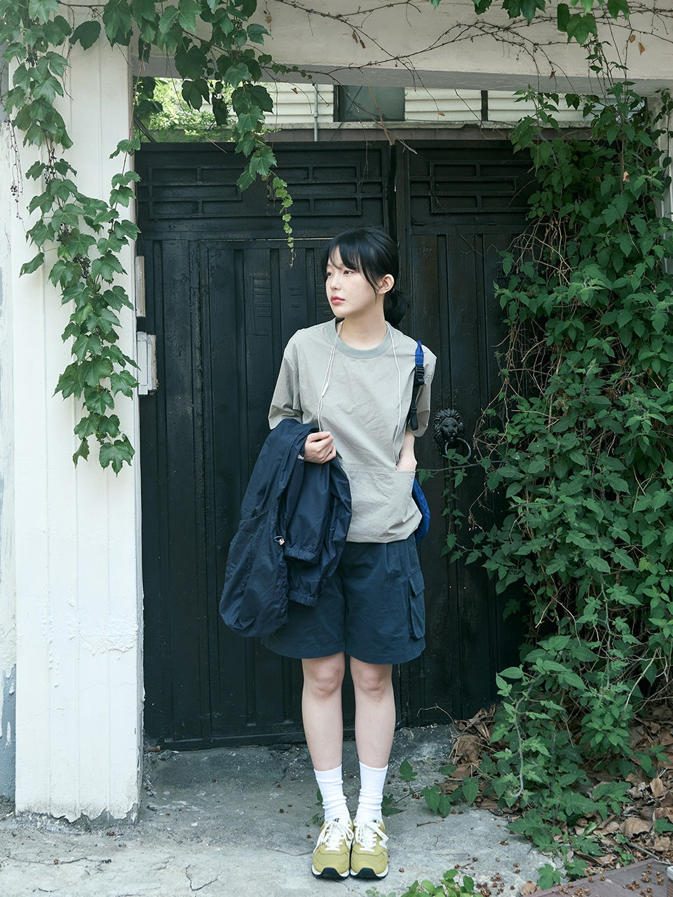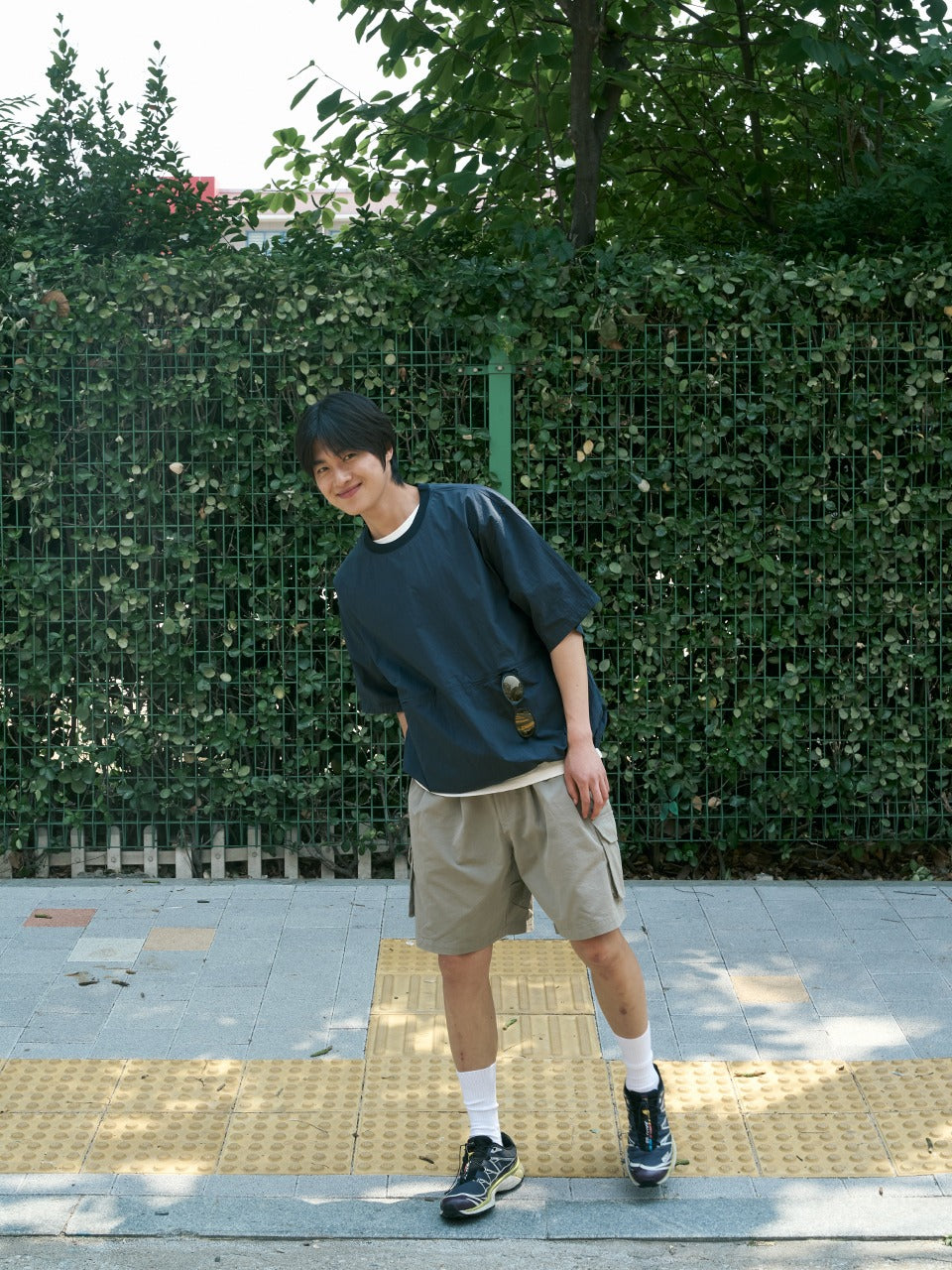 周末中午溫度迅速升高,與朋友約好在公園見面的日子。只穿著T恤搭配這款Cargo短褲出門,也不覺得忙亂。手機、錢包、耳機等分別放入每個口袋,膝上長度的版型讓活動時不感不便,能悠閒度過一天。