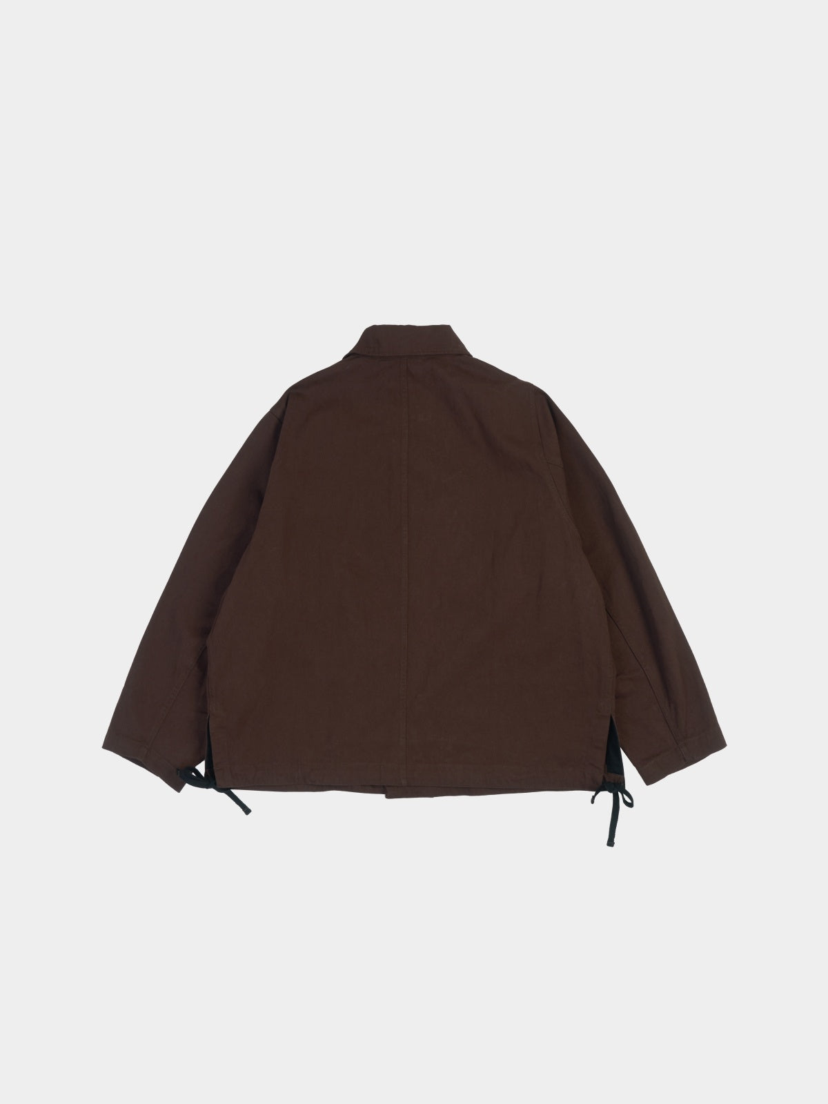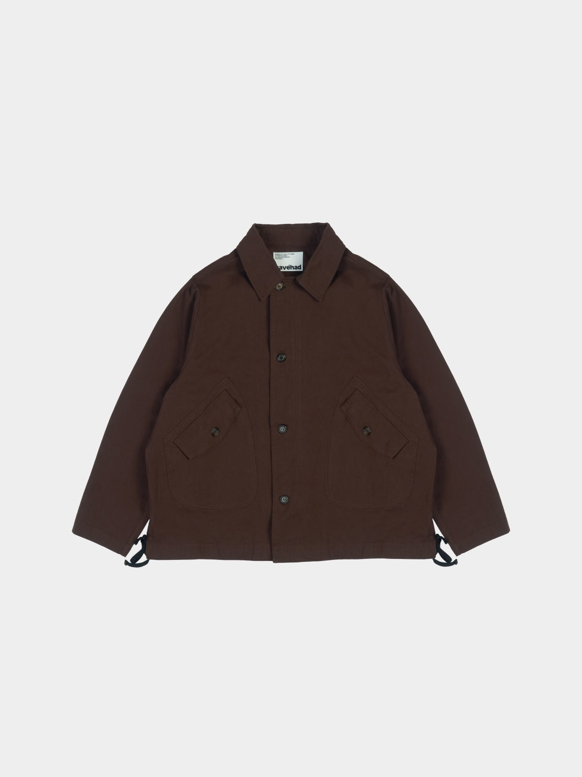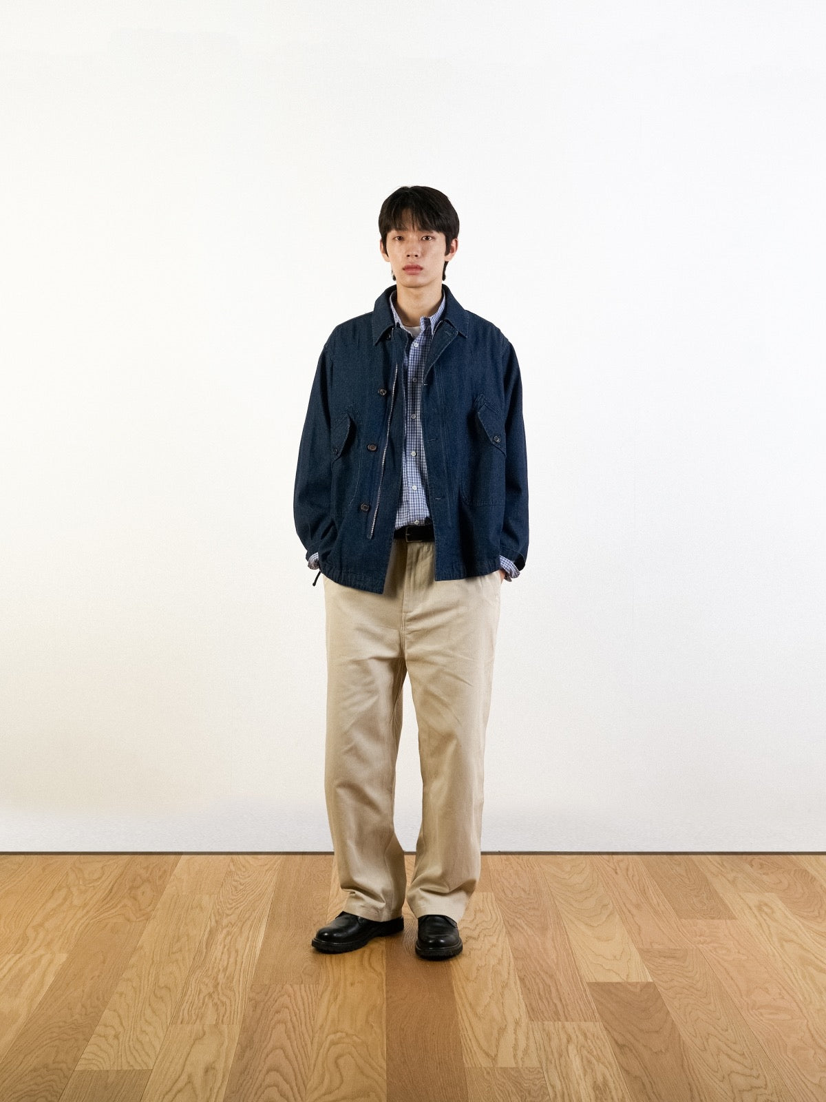 這款外套結合了短版剪裁和寬鬆的輪廓。以經典復古色調的10支高密度斜紋面料製作,柔和觸感與堅固耐用兼具。經過洗滌加工,展現自然質感,斜向口袋細節既實用又有個性。在過渡季節天氣中輕輕一披,也能提供足夠保暖性,是日常生活中長期穿著的實用外套。