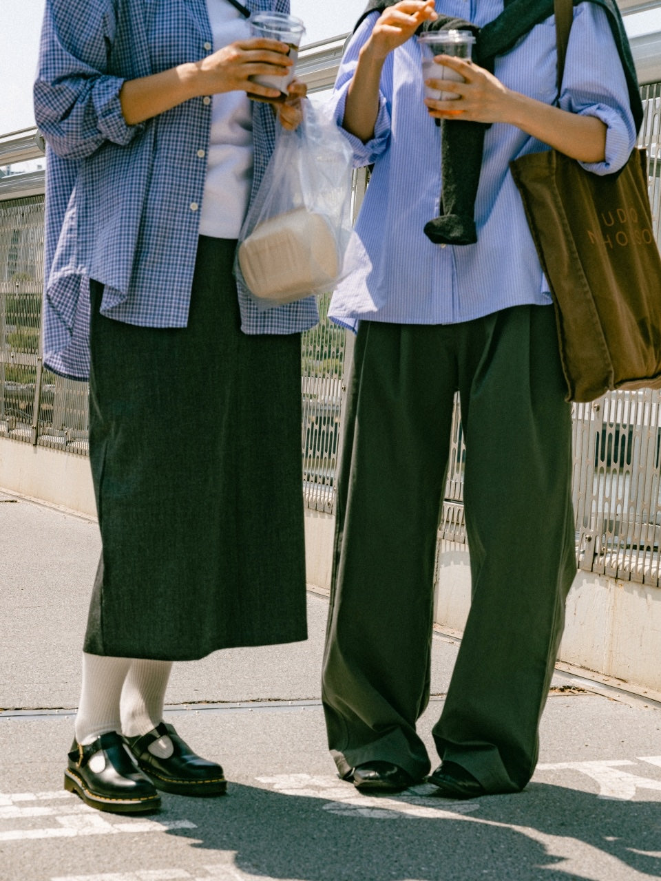 棉·尼龍混紡材質,具輕盈活潑的質感和優秀的透氣性,易於清洗和打理。柔和的色調搭配多樣上衣簡單自然,無論是正式場合或休閒場合皆相得益彰。