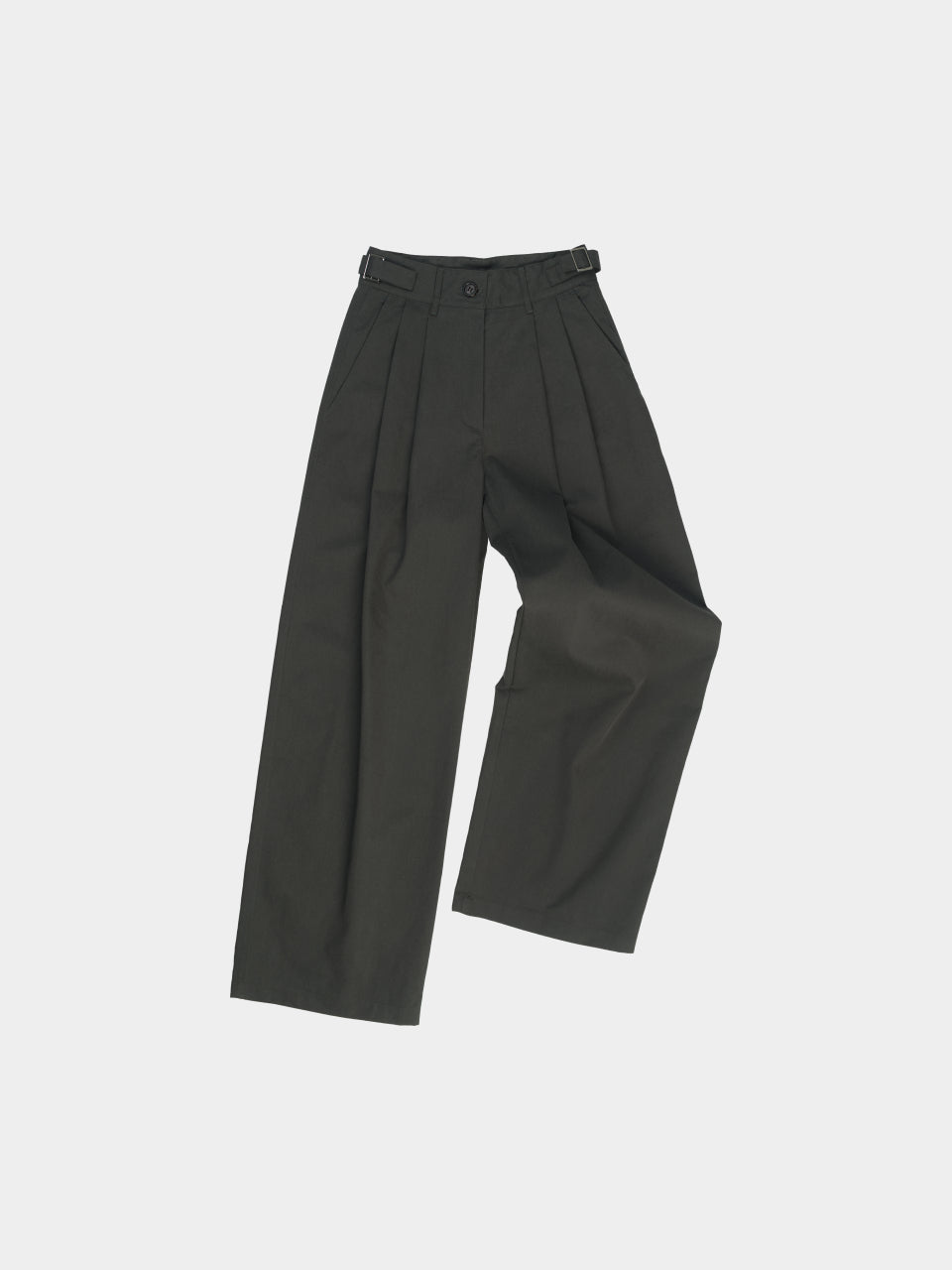 (W)Office Belted Pin-tuck Pants - Khaki | W0 (S)