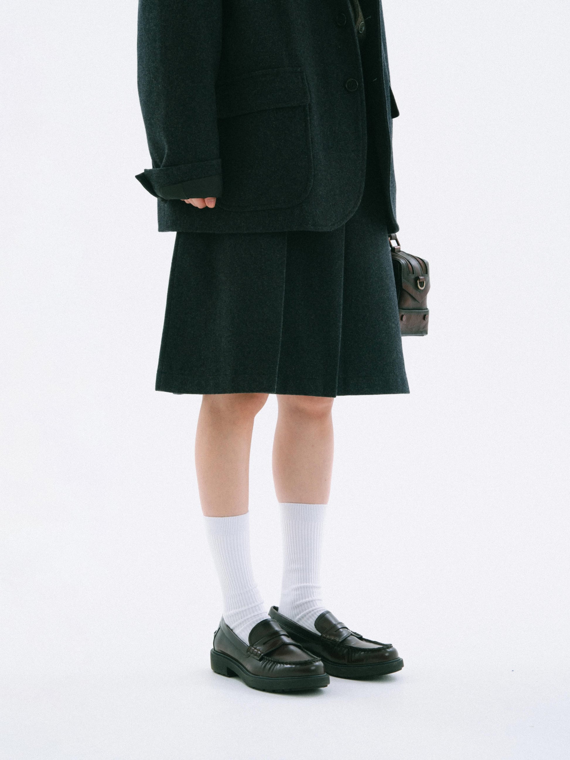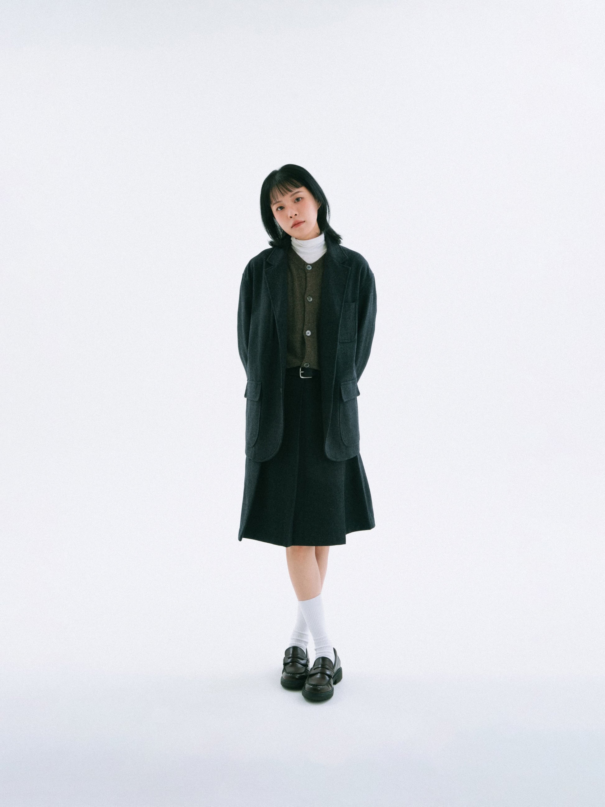 即使在冬日的空氣中也不失端莊感的褶皺輪廓,這是一款由羊毛混紡材質製成的褶皺裙,以柔和的觸感和穩定的形態而著稱。規律的褶紋營造出清新而樸素的印象,裙長略過膝蓋,能與各式冬季外套完美搭配。搭配絲襪或靴子,輕鬆展現出應季風格。