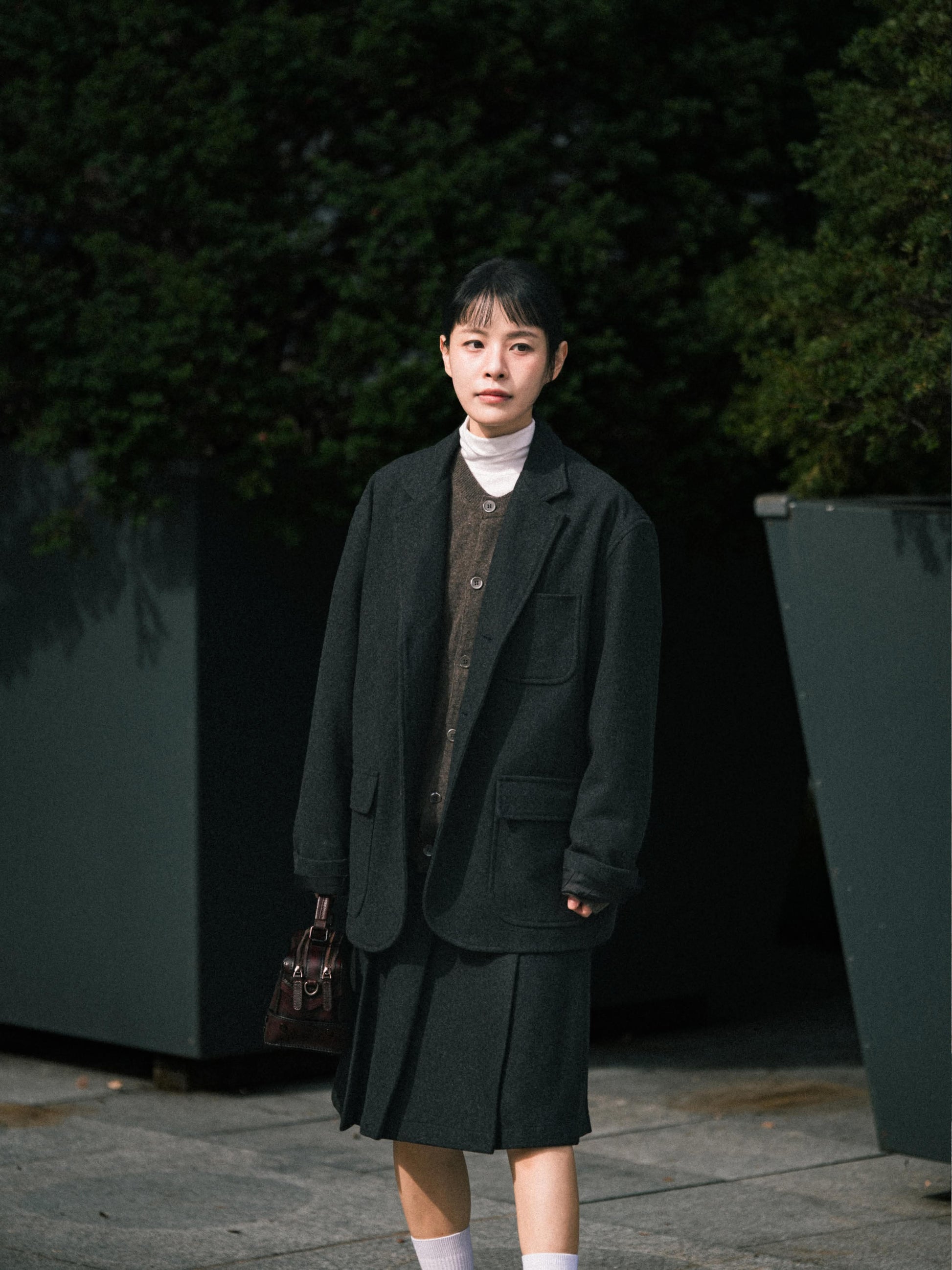 即使在冬日的空氣中也不失端莊感的褶皺輪廓,這是一款由羊毛混紡材質製成的褶皺裙,以柔和的觸感和穩定的形態而著稱。規律的褶紋營造出清新而樸素的印象,裙長略過膝蓋,能與各式冬季外套完美搭配。搭配絲襪或靴子,輕鬆展現出應季風格。