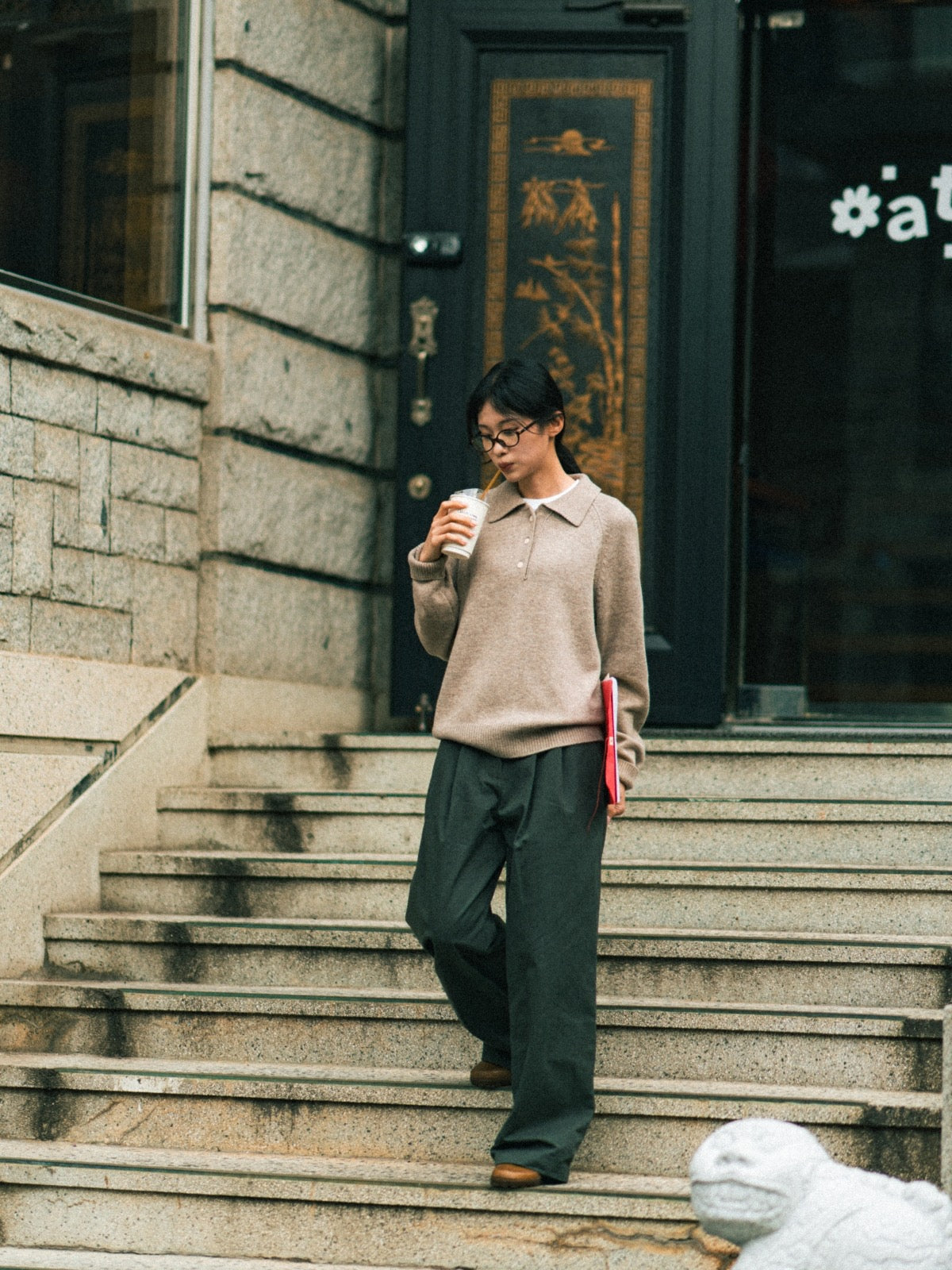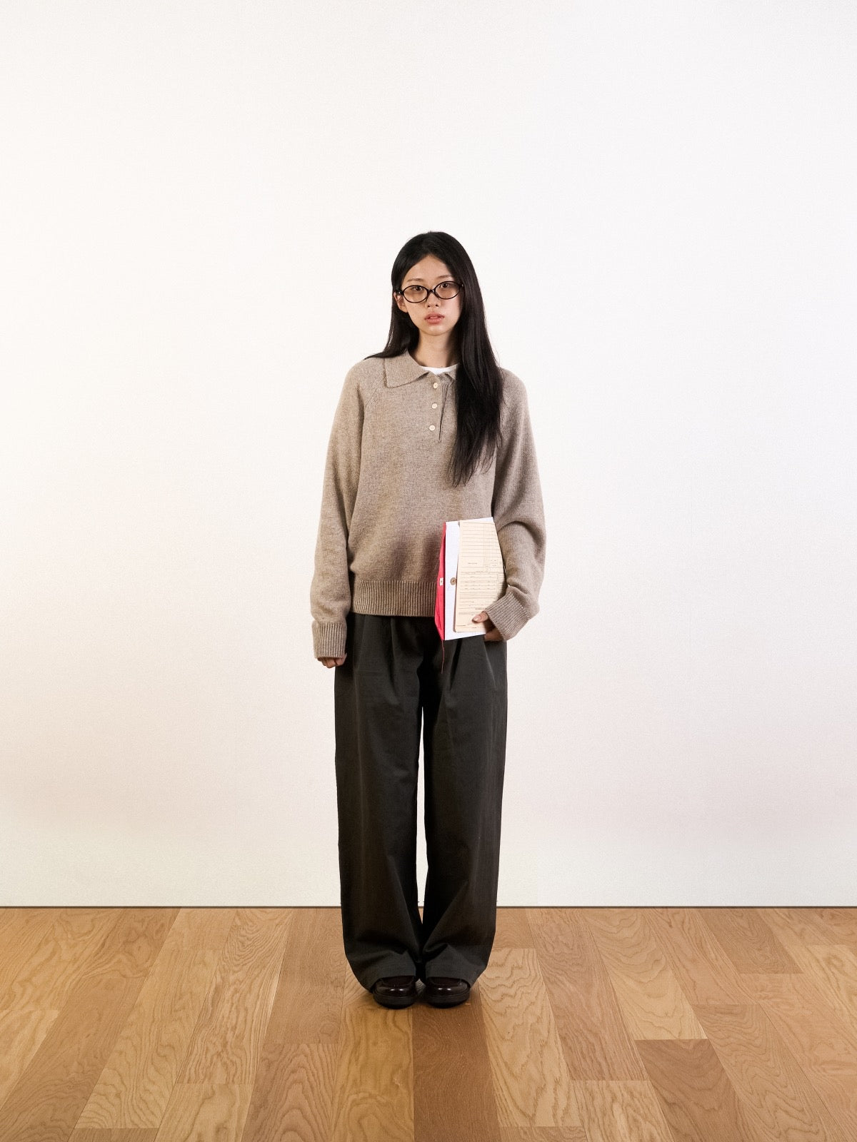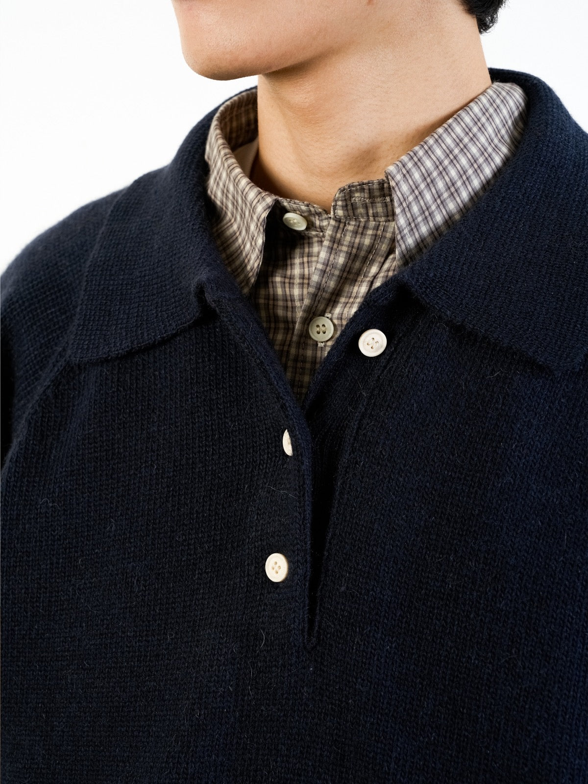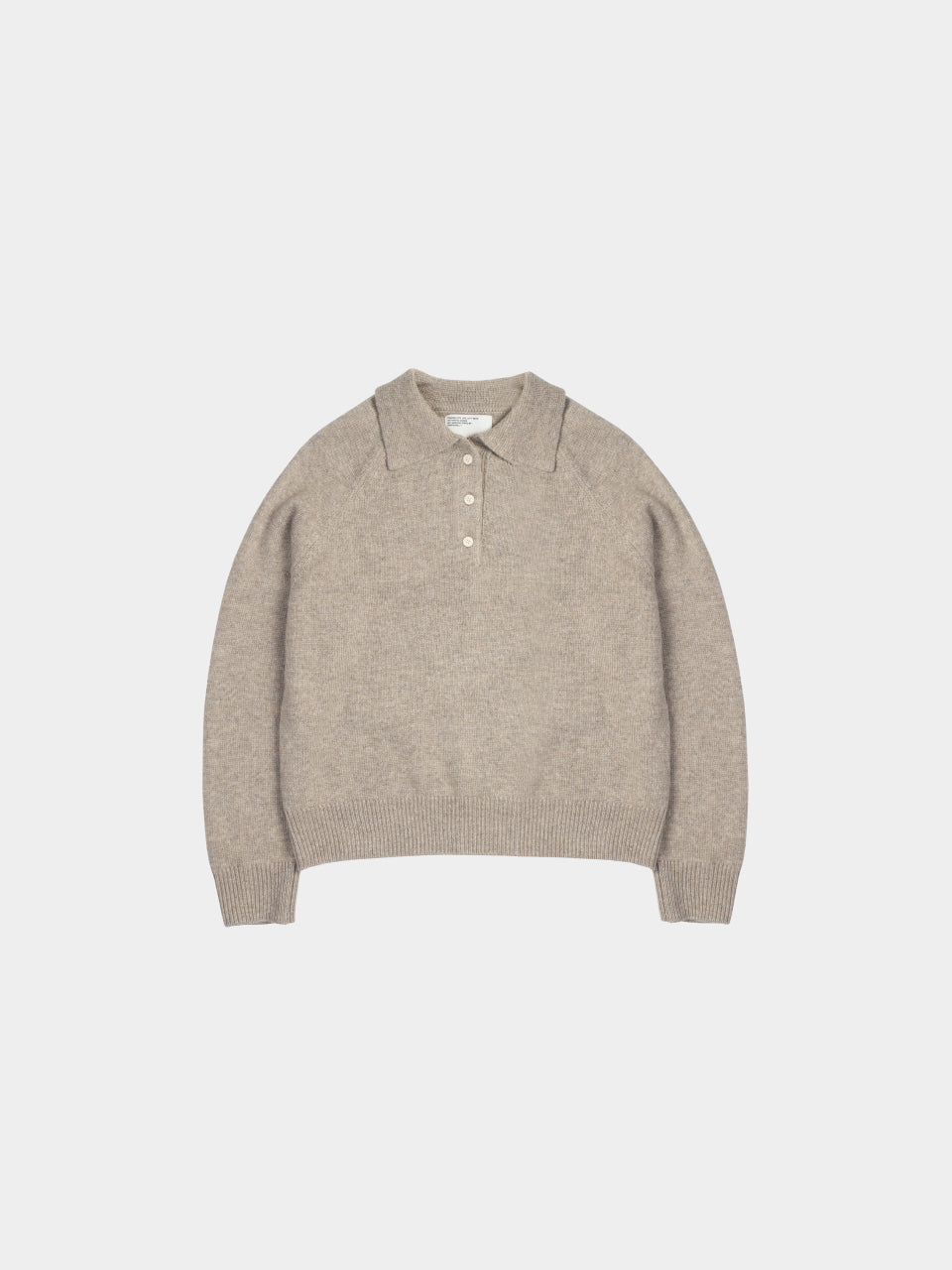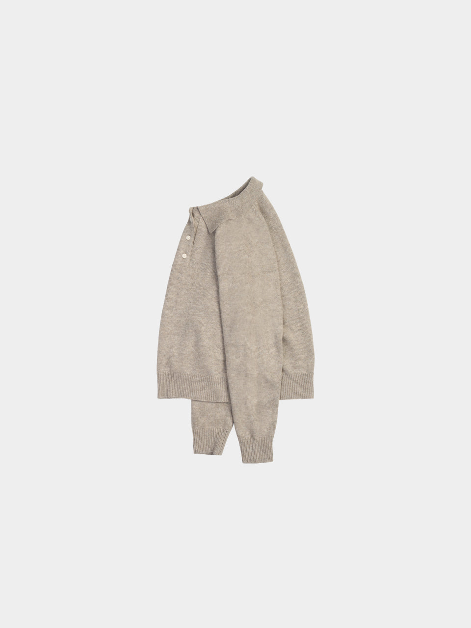 這款針織衫將氂牛毛和羊毛適當混合製成。質地溫和舒適,具備穩定的保暖性,不論季節皆可穿著。設計類似美式休閒風的Polo衫,其寬鬆的版型及平衡的翻領設計為特色,單穿或搭配外套皆自然合宜。