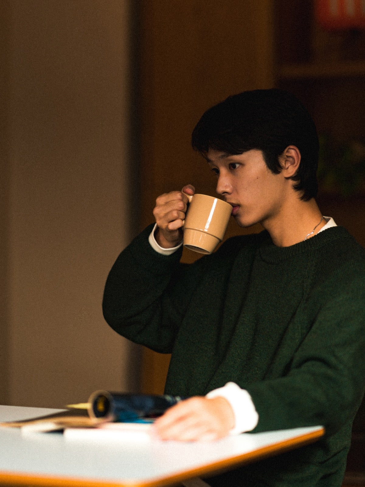 这是一款通过合理混合Yak和羊毛制成的圆领针织衫。虽为最基本款型,却以耐用的领口、宽松的版型以及自然下垂的插肩袖线条赋予了其独特的魅力。柔软到可以直接贴合皮肤,保暖性强,不受季节限制,不仅可以单穿,还能与衬衫或T恤叠搭,显得自然协调。